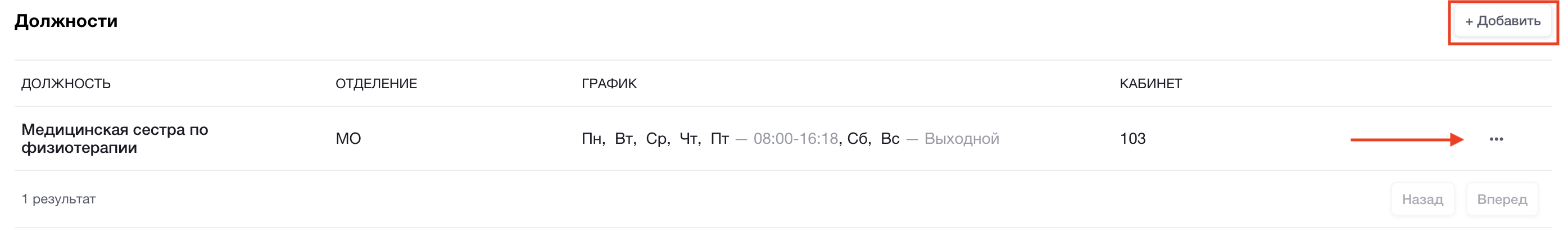 В поле “Кабинет” укажите кабинет в котором работает сотрудник. Если сотрудник не ведет прием по расписанию или в порядке живой очереди указывать кабинет не нужно.