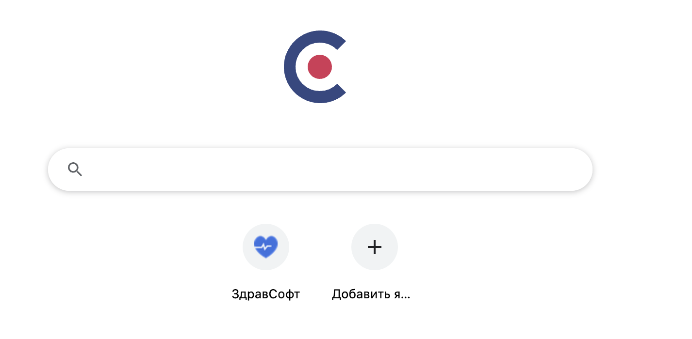 Для добавления ярлыка ЗдравСофт на стратовый экран браузера Chromium Gost необходимо запусить бразуер, нажатием на иконку